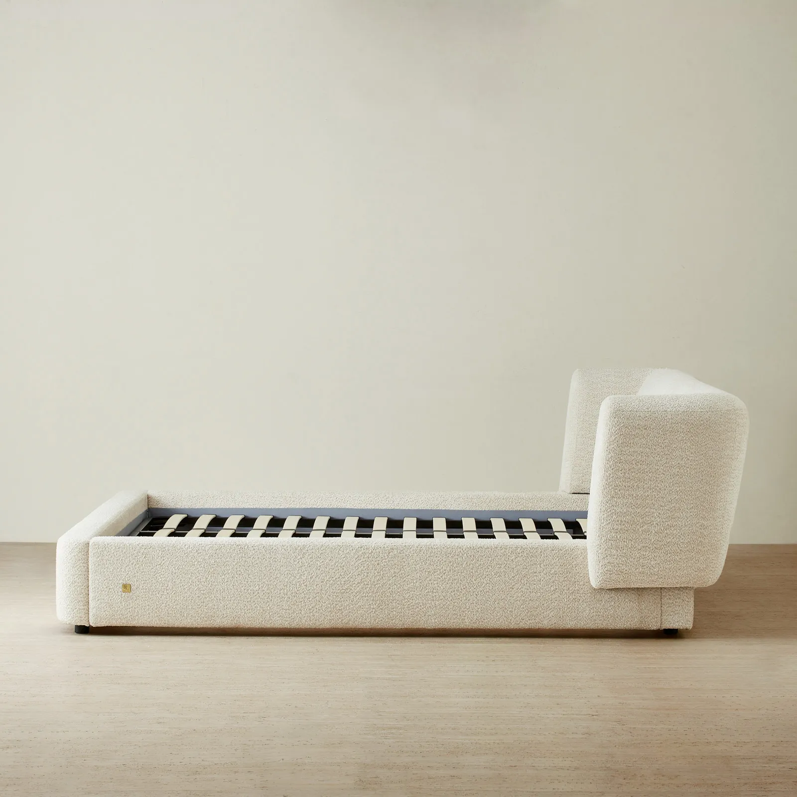 The Antonella Bed offers exceptional comfort with its soft, woven fabric, designed to provide a cosy, inviting feel. The bed’s sleek, minimalist form exudes modern elegance, while the rich texture of the fabric adds subtle depth to the design.