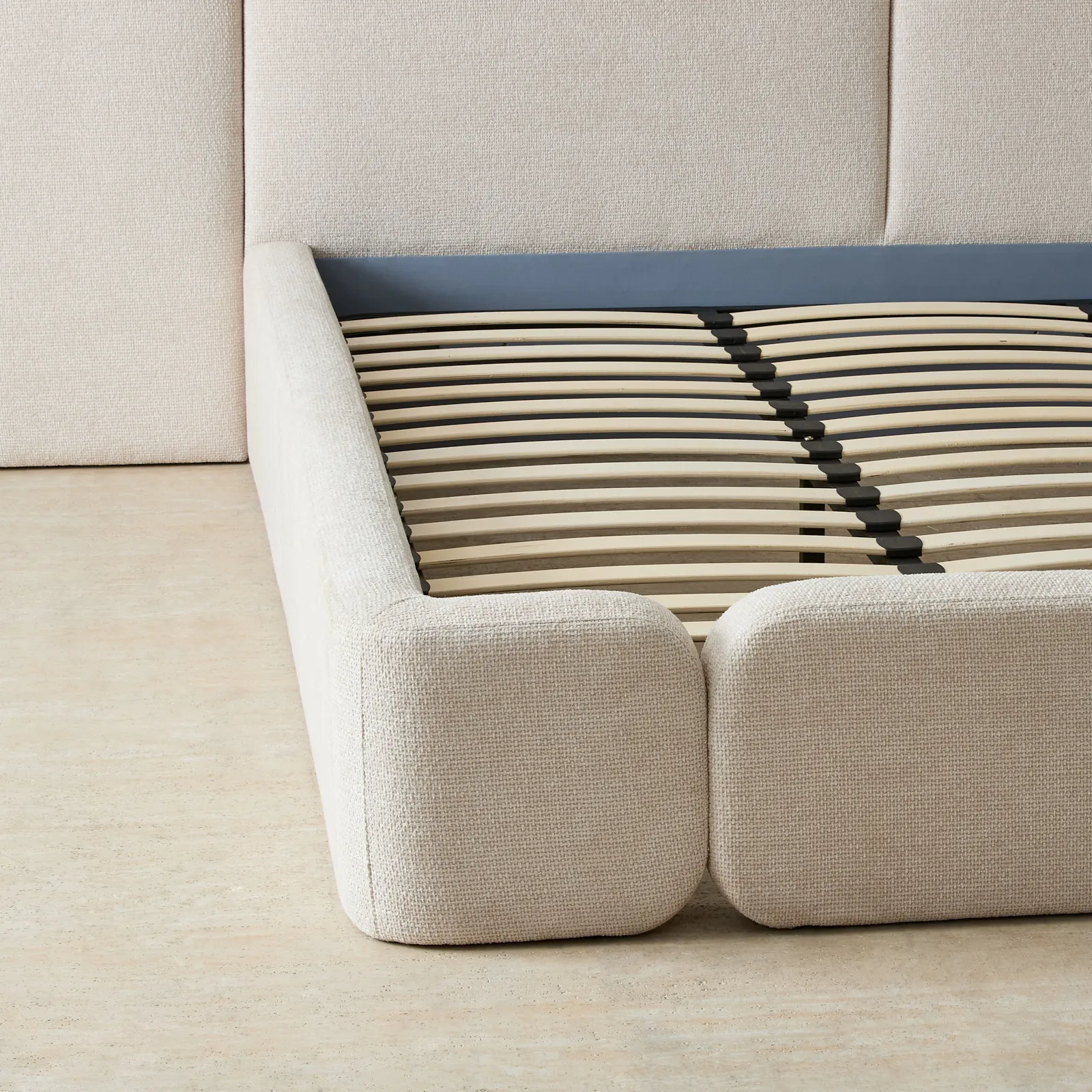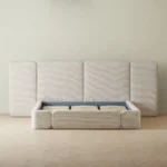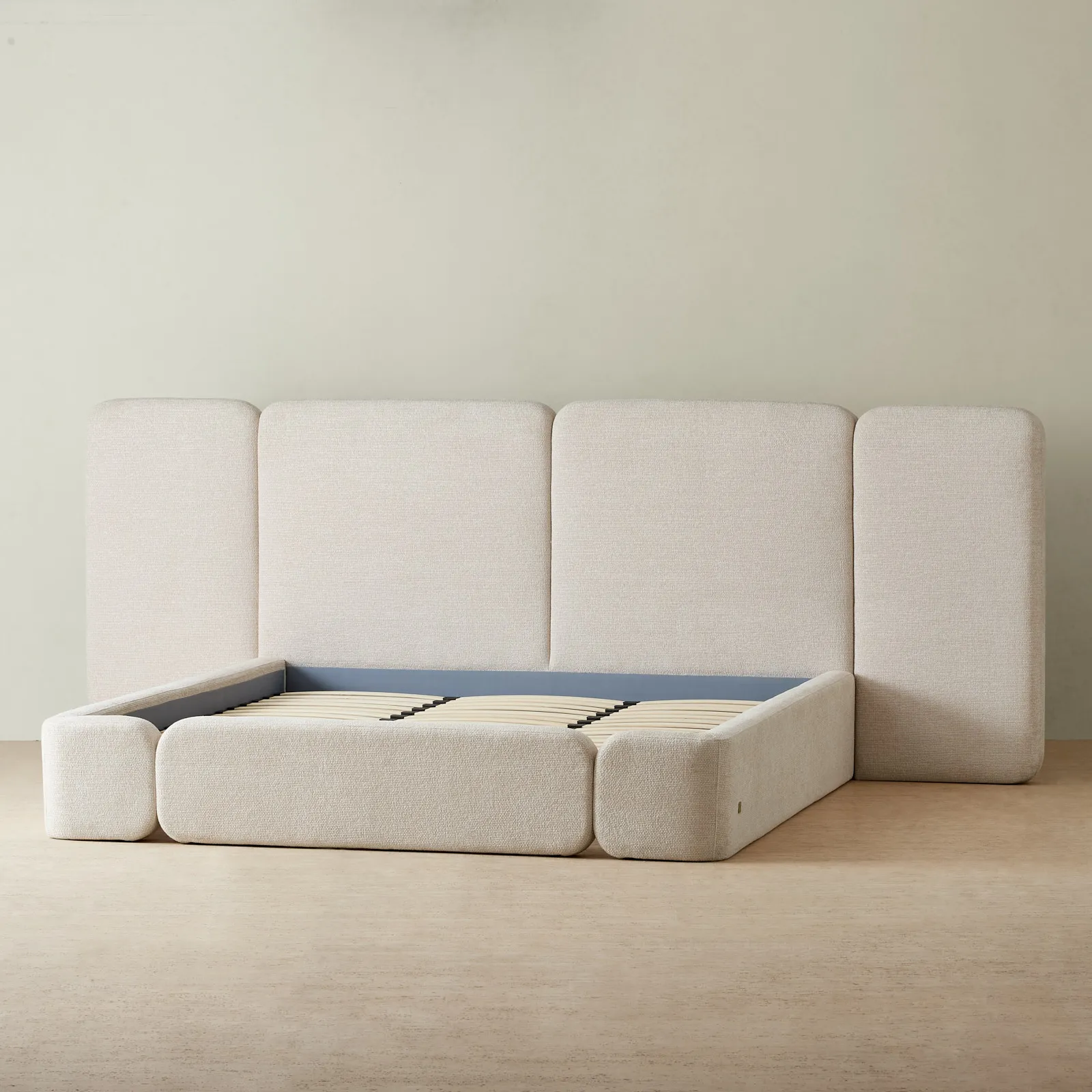 The Arcadia King Bed offers a striking geometric design, characterised by its clean, square-shaped form. The oversized headboard creates a bold statement, providing both style and comfort.