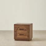 Two drawers provide space to store bedside items and keep surfaces clear. Black handles with gold-toned ends complete the piece with a clean, functional touch.