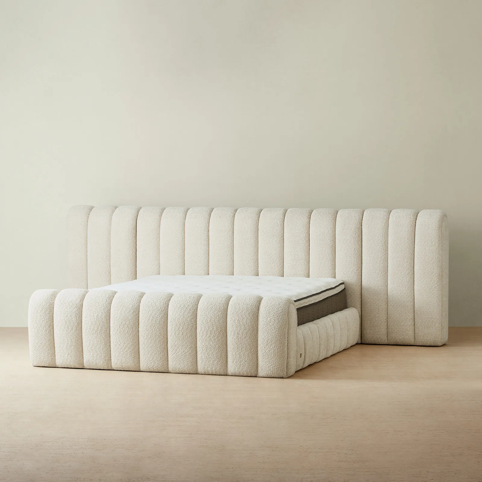 The Gabriella King Bed is a welcoming wall of comfort, where its soft, cushioned frame envelops you in warmth and relaxation.