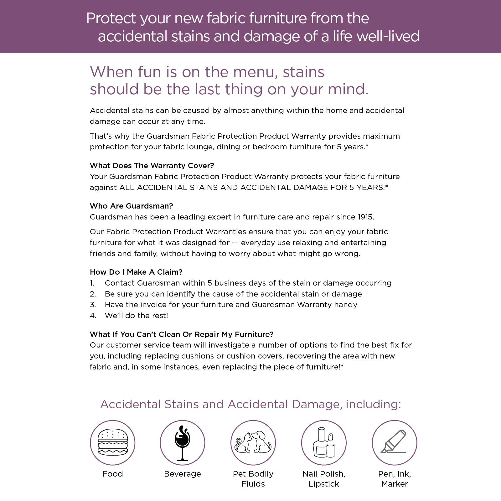 Guardsman Fabric Product Warranty 5-8 Seater