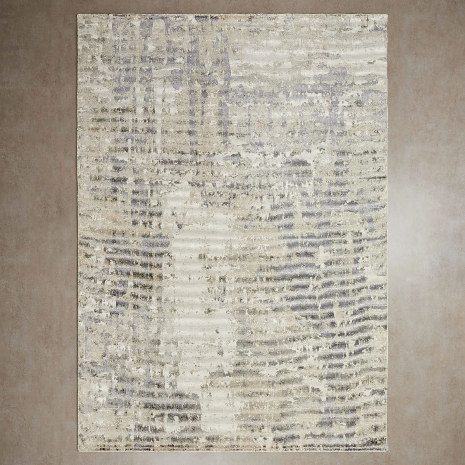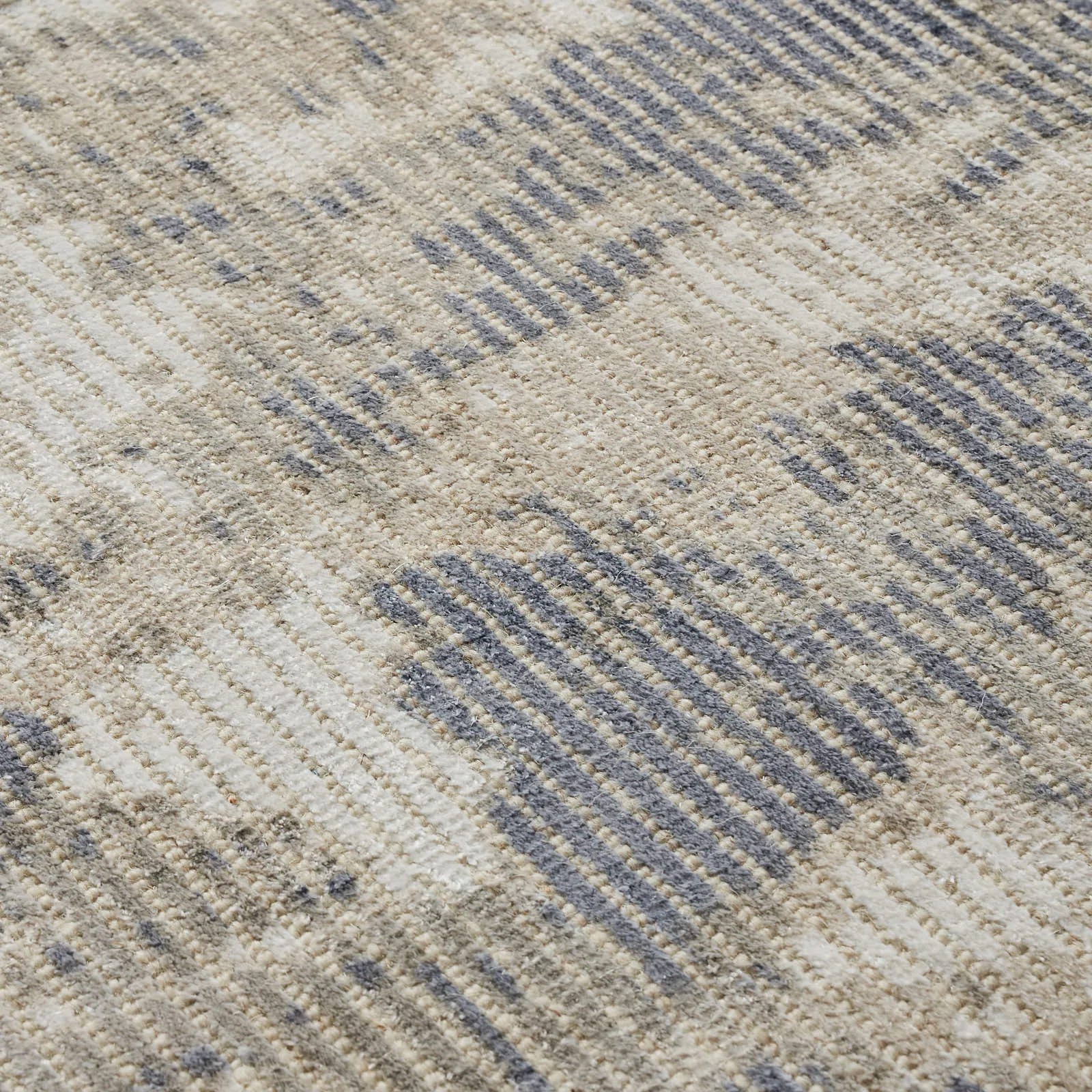 The Maded Floor Rugs pattern presents a modern take on distressed art, with a harmonious mix of soft blue and neutral beige tones.