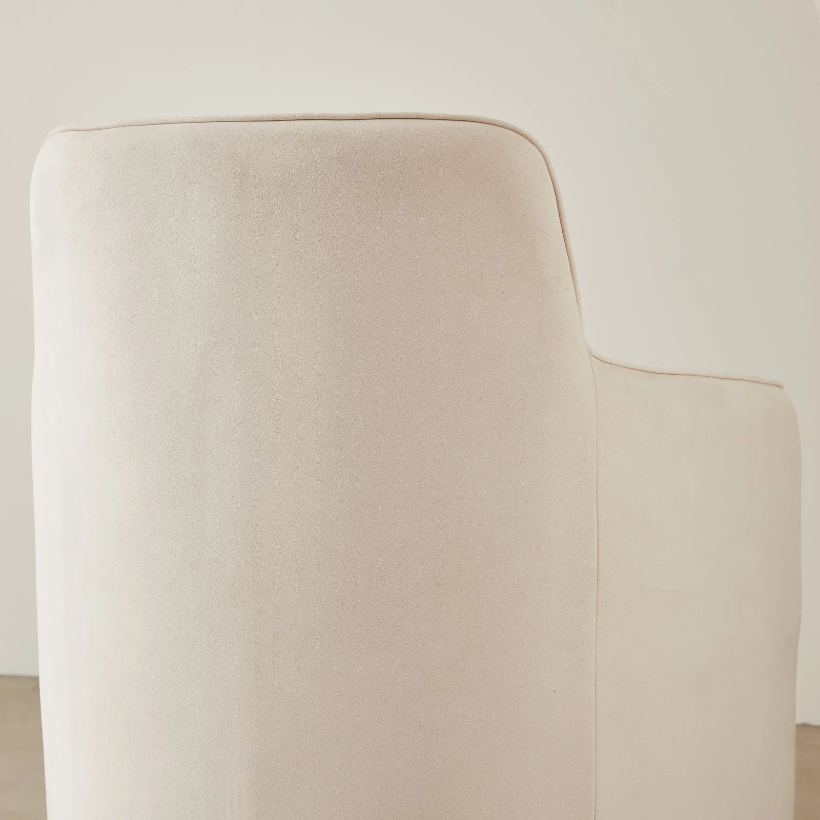 The microfiber fabric provides a luxuriously soft and inviting texture, combining comfort with practicality. A golden outline beneath the seat adds a subtle touch of luxury, making the Otis truly unique.