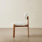 Wrapped in soft Murmur White fabric, the Portobello Dining Chair offers a comfortable seat designed for long, relaxed dining.