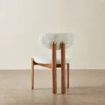 The toffee brown ash legs bring warmth and balance to the look, finished with understated brass caps. Built for both comfort and style, it fits seamlessly into modern dining spaces.