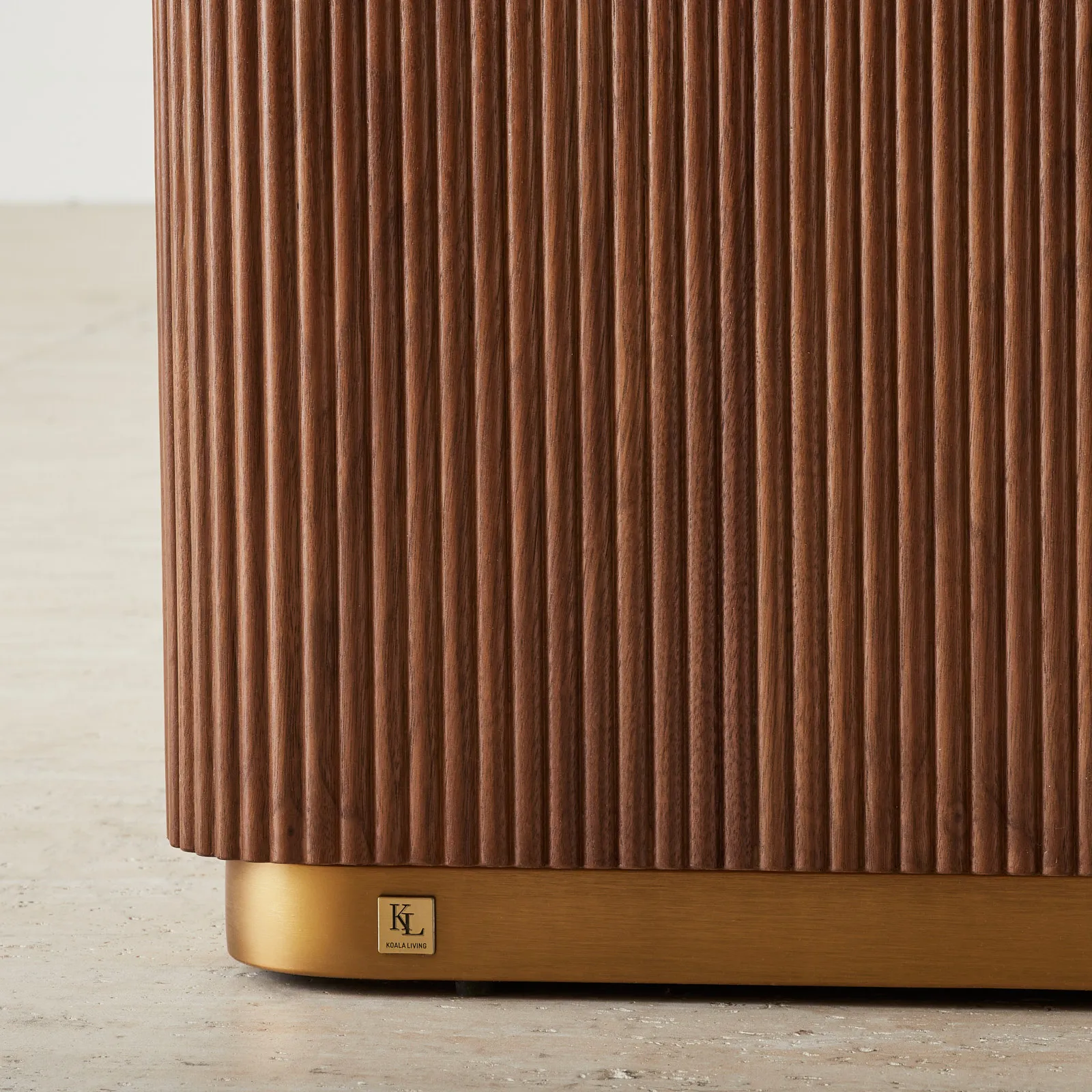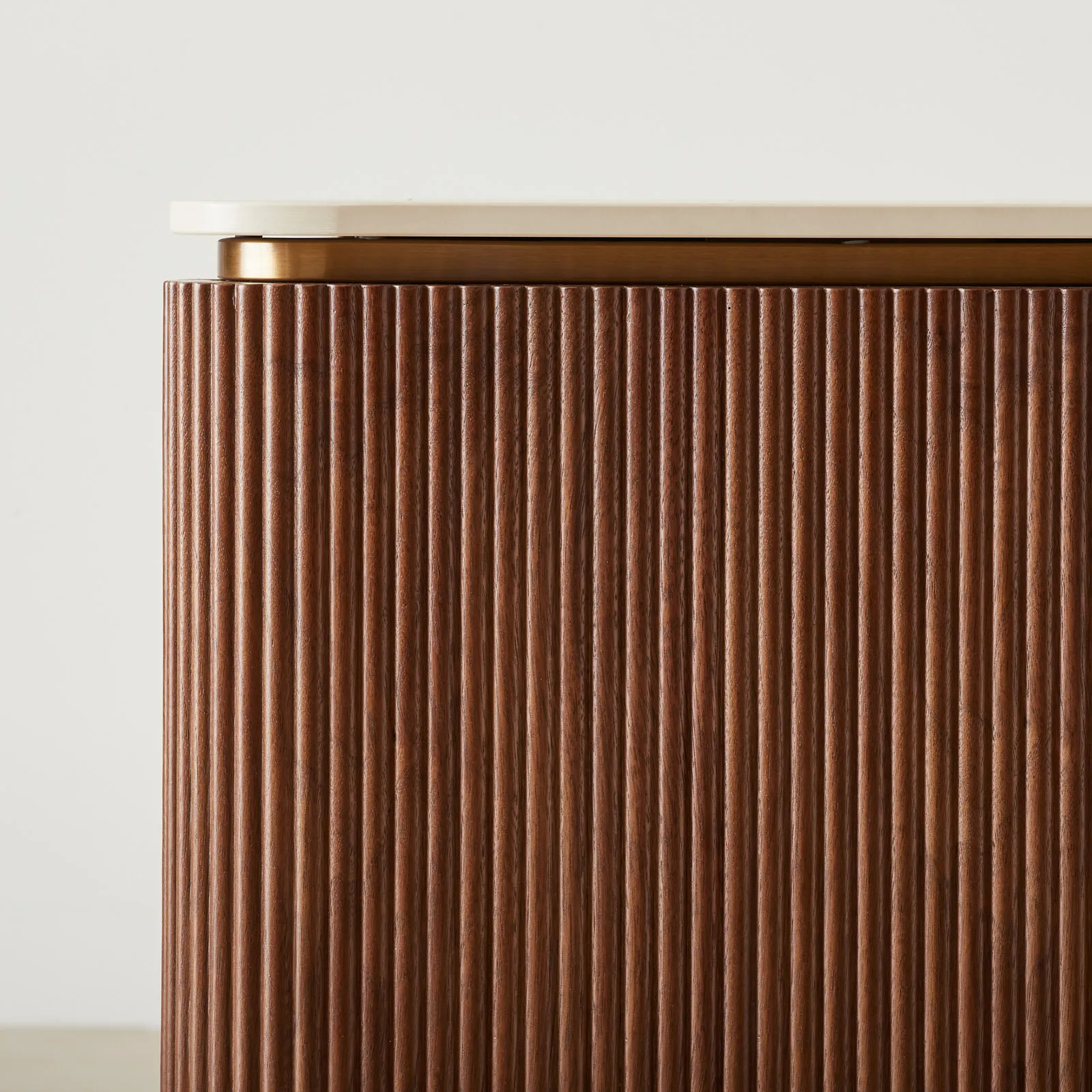 San Pierre Walnut Veneer Bedside Table – Travertine Finish Sintered Stone Top