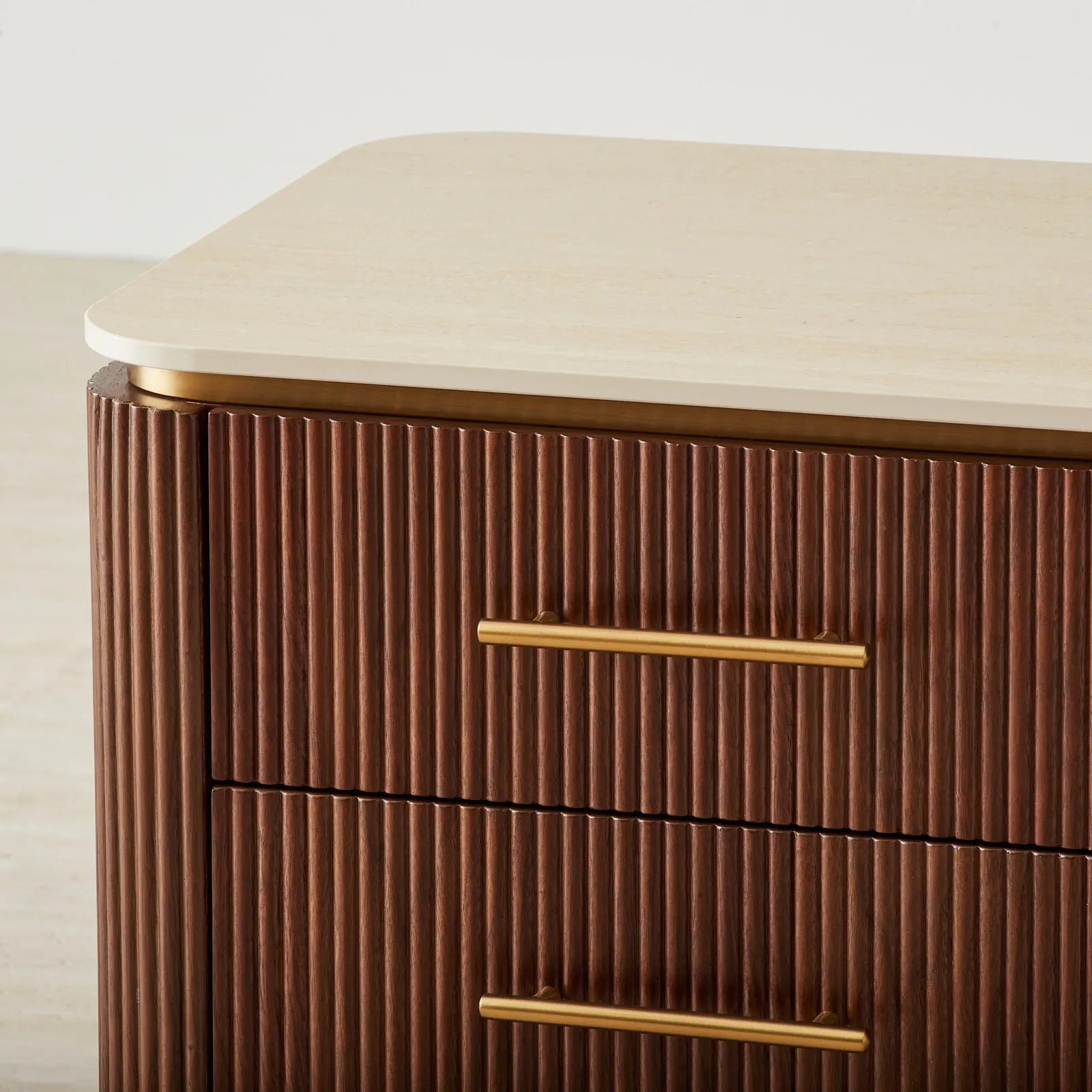 San Pierre Walnut Veneer Dresser - Travertine Finish Sintered Stone Top
