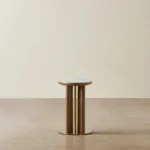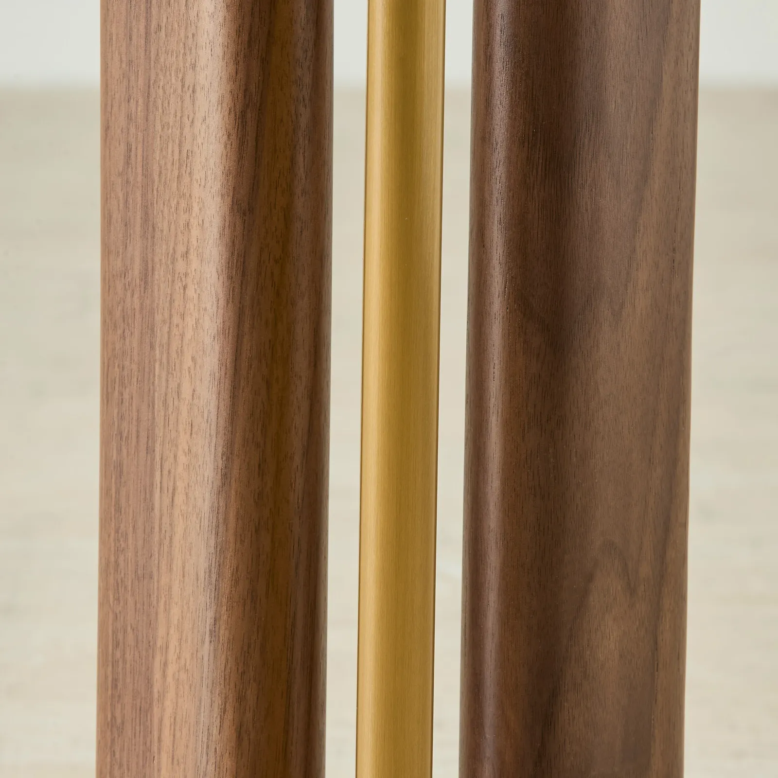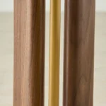 Brass accents add a subtle modern touch, complementing the natural warmth of the wood. The blend of stone, wood, and brass offers a perfect harmony of natural and modern elegance.